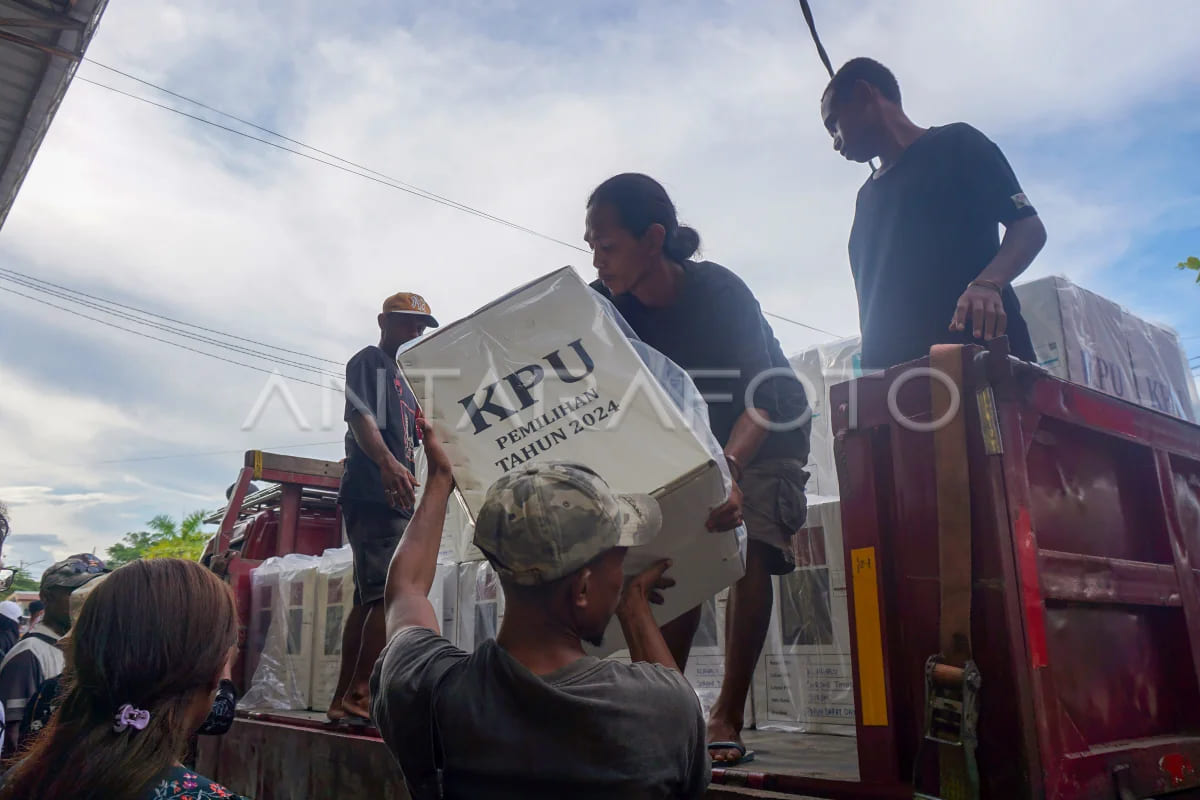 Foto: Petugas memasukan logistik Pilkada 2024 ke kendaraan di Kota Sorong, Papua Barat Daya, Senin (25/11/2024). KPU Papua Barat Daya mulai mendistribusikan logistik pilkada ke 1.554 tempat pemungutan suara yang tersebar di 1.013 kampung di 132 distrik. ANTARA FOTO/Olha Mulalinda/agr