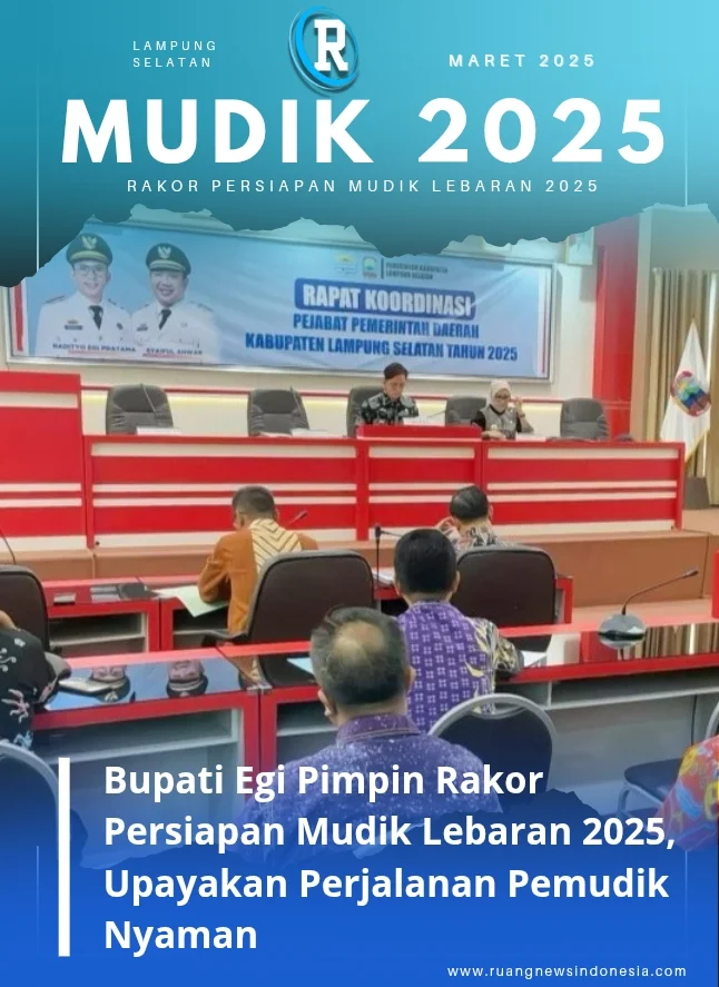 Lampung Selatan, RNI.COM – Bupati Lampung Selatan, Radityo Egi Pratama memimpin rapat koordinasi (rakor) tingkat pejabat daerah terkait persiapan operasional angkutan lebaran dan arus mudik Idulfitri 1446 hijriah/tahun 2025.