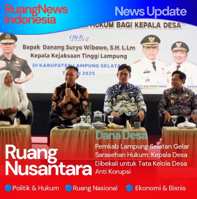 Lampung Selatan, RuangNewsIndonesia.Com – Pemerintah Kabupaten (Pemkab) Lampung Selatan menggelar Sarasehan Hukum bertema “Penguatan Pemahaman Hukum bagi Kepala Desa se-Kabupaten Lampung Selatan” di Aula Sebuku, Rumah Dinas Bupati, pada Jumat (8/8/2025).