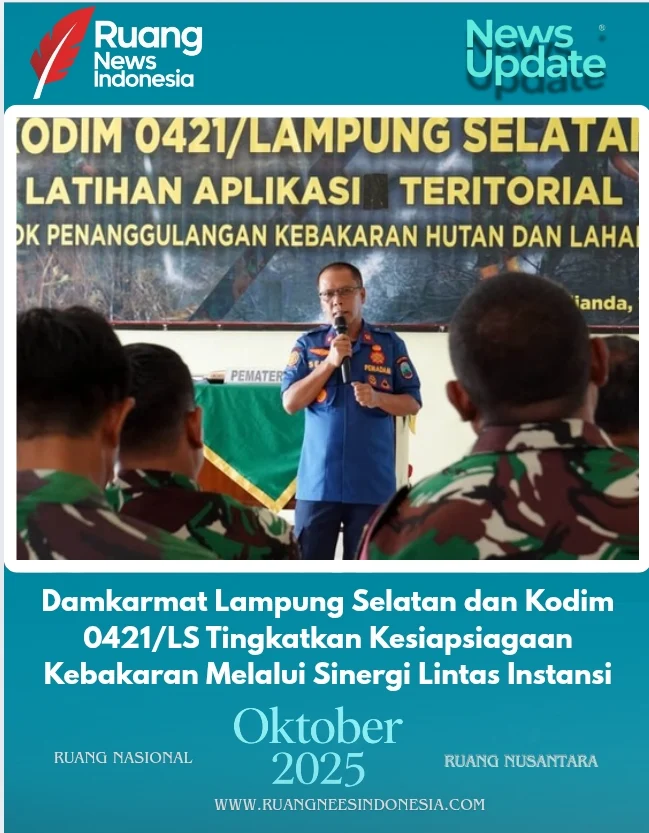 Lampung Selatan (RuangNewsIndonesia.Com) – Dinas Pemadam Kebakaran dan Penyelamatan (Damkarmat) Kabupaten Lampung Selatan terus berupaya meningkatkan kesiapsiagaan dalam menghadapi bencana kebakaran dengan memperkuat sinergi bersama berbagai instansi. Salah satu langkah konkretnya adalah melalui kegiatan pelatihan dan simulasi pemadaman kebakaran yang dilaksanakan bersama Komando Distrik Militer (Kodim) 0421/Lampung Selatan. Kegiatan ini berlangsung di Aula Parikesit Kodim 0421/LS pada Jumat (10/10/2025).