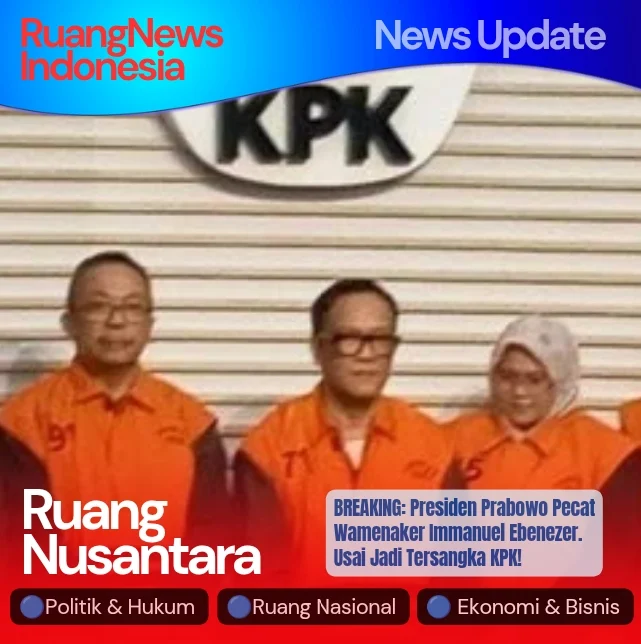 Jakarta (RuangNewsIndonesia.Com) – Presiden Prabowo Subianto secara resmi memberhentikan Immanuel Ebenezer Gerungan dari jabatannya sebagai Wakil Menteri Ketenagakerjaan (Wamenaker) setelah Komisi Pemberantasan Korupsi (KPK) menetapkannya sebagai tersangka dalam kasus dugaan pemerasan terkait pengurusan sertifikat keselamatan dan kesehatan kerja (K3).