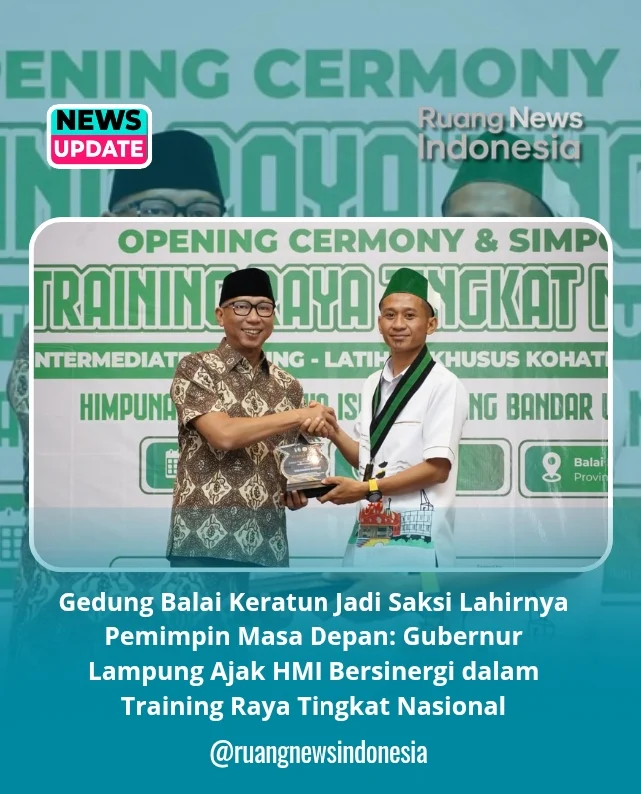 Bandar Lampung, (RuangNewsIndonesia.Com) – Gedung Balai Keratun, pusat kegiatan pemerintahan Provinsi Lampung, menjadi saksi semangat para pemuda yang berkumpul dalam Training Raya Tingkat Nasional Himpunan Mahasiswa Islam (HMI) Cabang Bandar Lampung. Gubernur Lampung Mirza hadir dan menekankan pentingnya sinergi antara pemerintah dan organisasi kemahasiswaan dalam membangun daerah dan bangsa, Sabtu (25/10/2025).