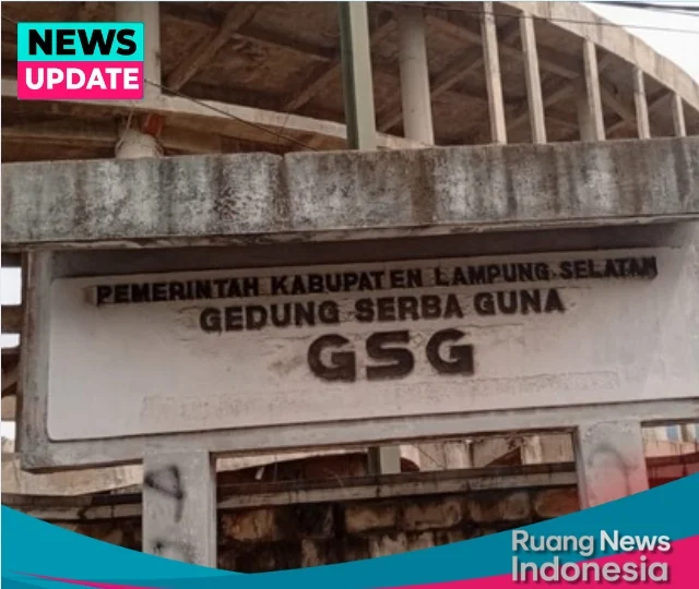Tulisan “GEDUNG SERBA GUNA (GSG)” pada papan itu memudar, catnya terkelupas, dan semen di sekelilingnya retak seolah ikut menghela napas panjang. Temboknya belang, penuh noda air, seperti mengingatkan publik bahwa sebelum proyek ini mangkrak, sudah ada bangunan sebelumnya yang juga berakhir sebagai bangkai administratif.