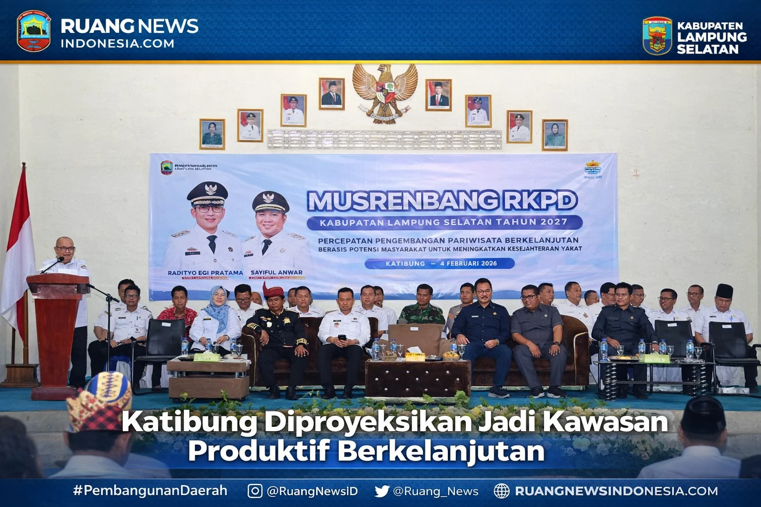 Komitmen tersebut ditegaskan Bupati Lampung Selatan, Radityo Egi Pratama, dalam Musyawarah Perencanaan Pembangunan (Musrenbang) RKPD Tahun 2027 yang digelar di GSG Bakhong Gawi, Desa Tanjung Ratu, Kecamatan Katibung, Rabu (4/2/2026).