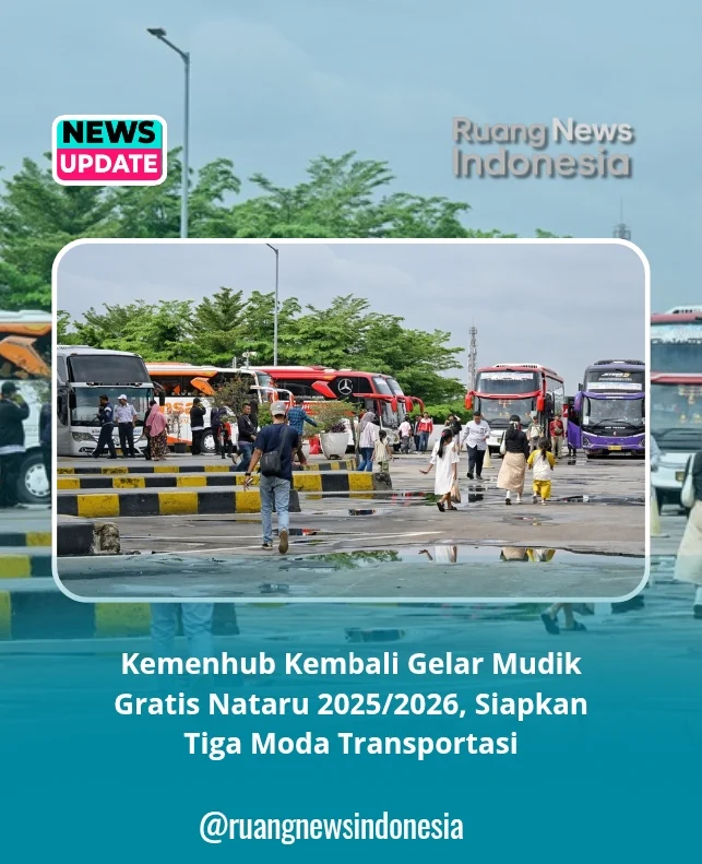Jakarta, (RuangNewsIndonesia.Com) – Pemerintah melalui Kementerian Perhubungan (Kemenhub) kembali menghadirkan program mudik gratis untuk periode libur Natal 2025 dan Tahun Baru 2026 (Nataru). Inisiatif ini bertujuan untuk memfasilitasi masyarakat agar dapat pulang ke kampung halaman dengan selamat, aman, dan nyaman, sekaligus mengurangi kepadatan lalu lintas kendaraan pribadi di jalan raya.