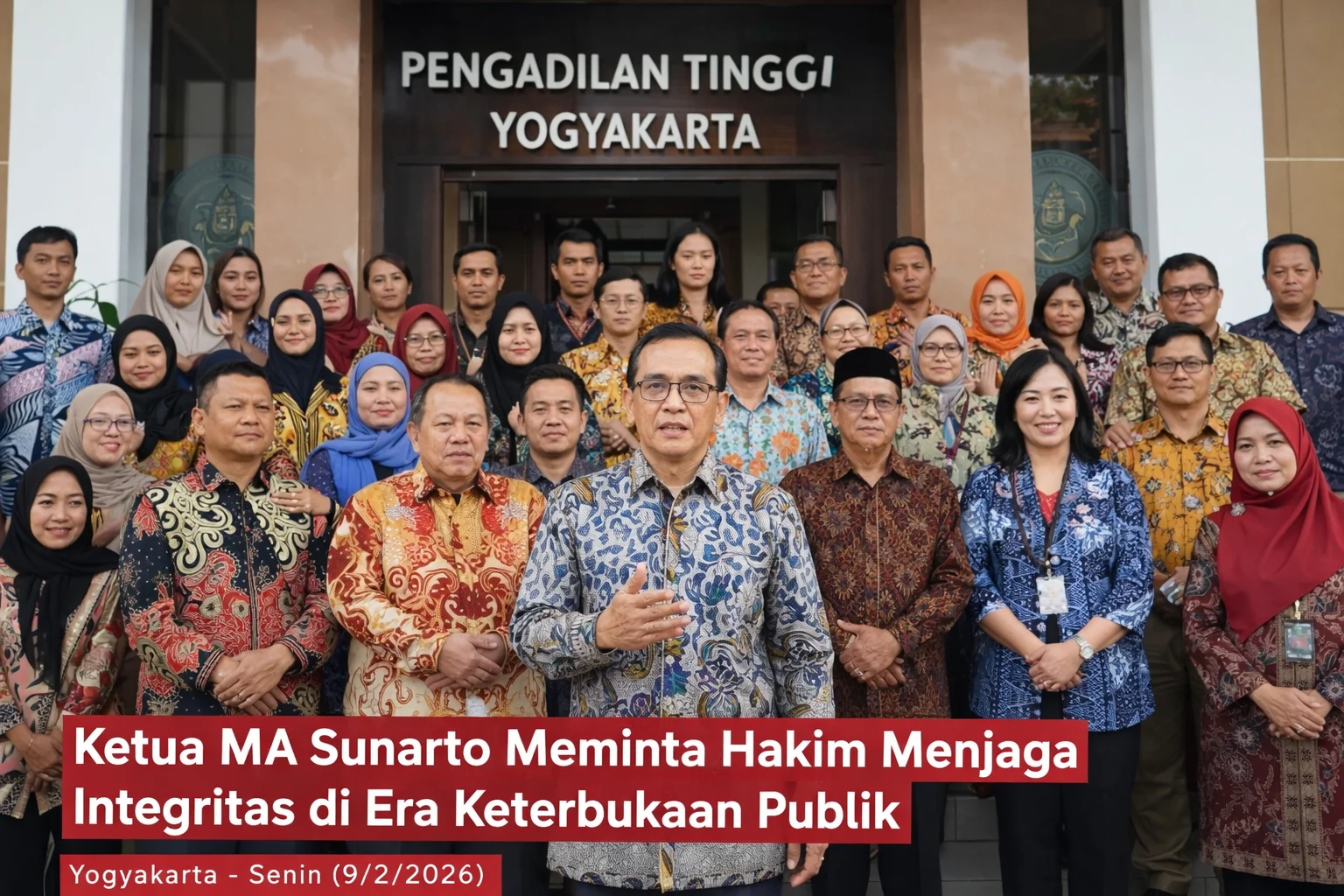 Pernyataan tersebut disampaikan Sunarto saat memberikan Pembinaan Teknis Administrasi dan Yudisial oleh Pimpinan Mahkamah Agung RI di Pengadilan Tinggi Yogyakarta, Senin (9/2/2026).