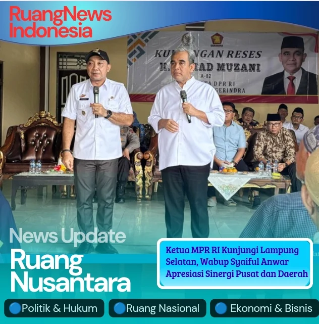 Natar, Lampung Selatan (RuangNewsIndonesia.Com) – Ketua MPR RI, Ahmad Muzani, melaksanakan kunjungan kerja (Kundapil) ke Desa Candimas, Kecamatan Natar, Lampung Selatan, pada Jumat (26/9/2025). Kunjungan ini didampingi langsung oleh Wakil Bupati Lampung Selatan, M. Syaiful Anwar.