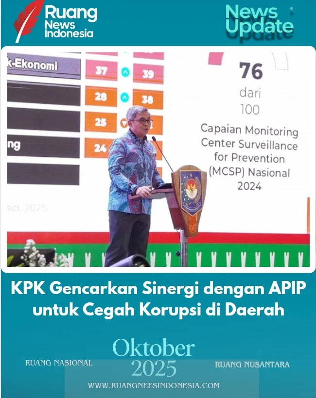 Jakarta (RuangNewsImdonesia.Com) – Komisi Pemberantasan Korupsi (KPK) menekankan pentingnya peran Aparat Pengawasan Intern Pemerintah (APIP) sebagai garda terdepan dalam memperkuat sistem pengawasan dan mencegah korupsi di daerah. Sinergi pengawasan internal dinilai krusial untuk memastikan keberhasilan Program Strategis Nasional (PSN) dengan pembangunan yang berintegritas.