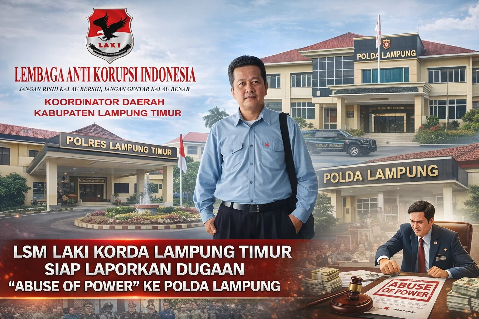 Lampung Timur, Ruang News Indonesia – Lembaga Swadaya Masyarakat Lembaga Anti Korupsi Indonesia Koordinator Daerah (LSM LAKI Korda) Lampung Timur menyatakan akan menempuh jalur hukum atas dugaan perbuatan abuse of power yang diduga melibatkan oknum pejabat di lingkungan Polres Lampung Timur dan Pemerintah Kabupaten Lampung Timur.