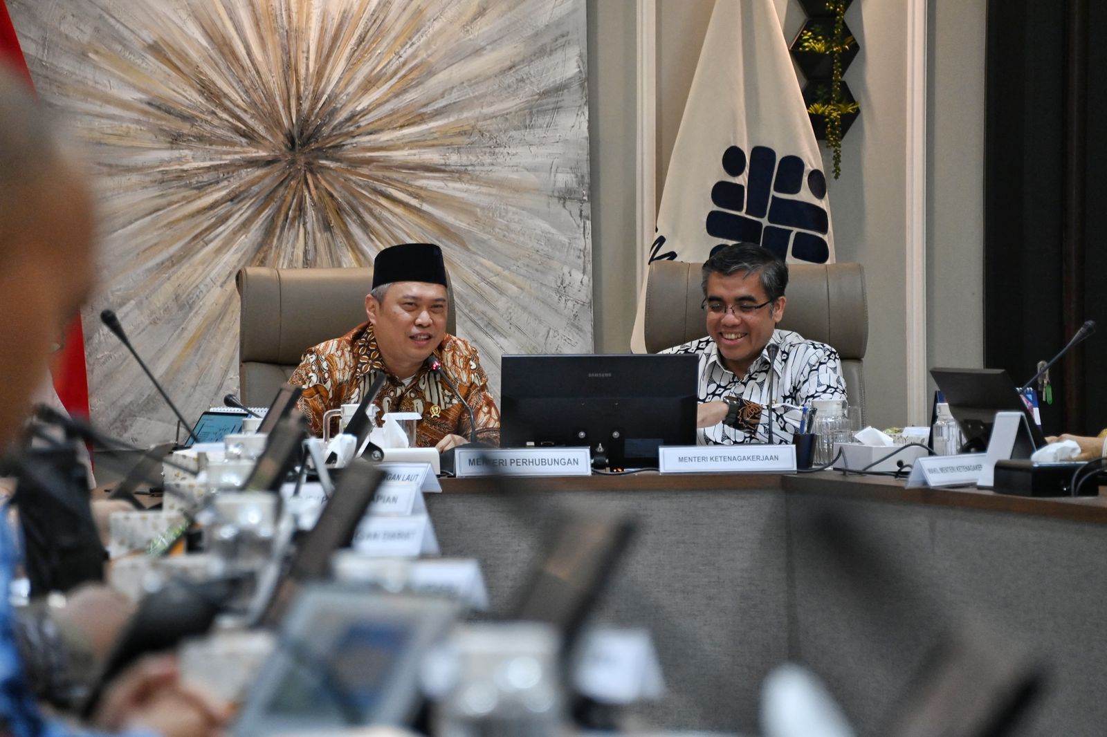 Foto : Menhub Dudy Purwagandhi bersama Menaker Yassierli membahas strategi lintas sektor kesiapan penyelenggaraan angkutan Lebaran 2025. Foto : Kemenhub