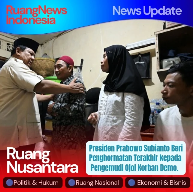 Jakarta (RuangNewsIndonesia.Com) – Presiden Republik Indonesia, Prabowo Subianto, menunjukkan rasa empati dan kepeduliannya dengan mengunjungi langsung rumah duka keluarga almarhum Affan Kurniawan, seorang pengemudi ojek online (ojol) yang menjadi korban dalam insiden demonstrasi pada Kamis (28/8/2025).