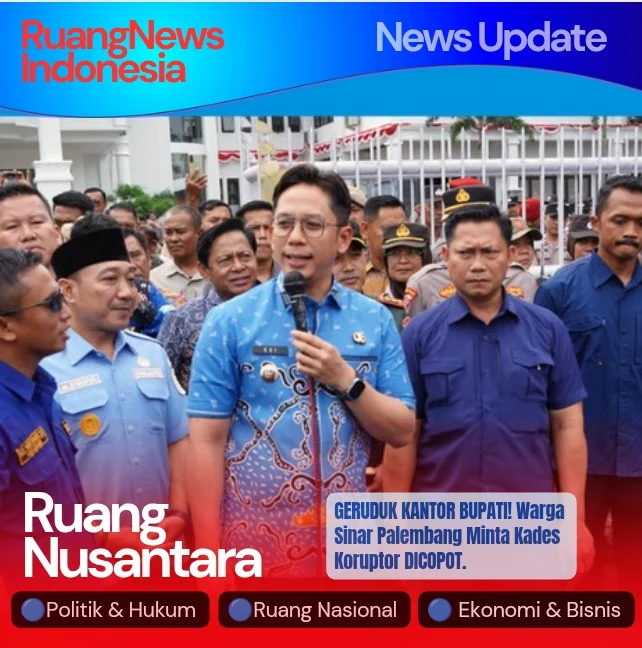 Lampung Selatan, RuangNewsIndonesia.Com – Ratusan warga Desa Sinar Palembang, Kecamatan Candipuro, bersama Ormas Gempita Rakyat Untuk Indonesia (Garuda), menggelar aksi unjuk rasa di Halaman Kantor Bupati Lampung Selatan, Kamis (21/8/2025). Aksi ini menuntut Kepala Desa Sinar Palembang, Sukoco, untuk diberhentikan dari jabatannya atas dugaan korupsi.