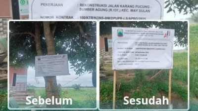 Way Sulan, Lampung Selatan (RuangNewsIndonesia.Com) – Sempat menuai kritik karena memasang plang proyek di pohon…