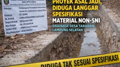 Lampung Selatan — Proyek Pembangunan/Peningkatan Drainase Desa Tarahan, Kecamatan Katibung, Kabupaten Lampung Selatan, yang didanai…