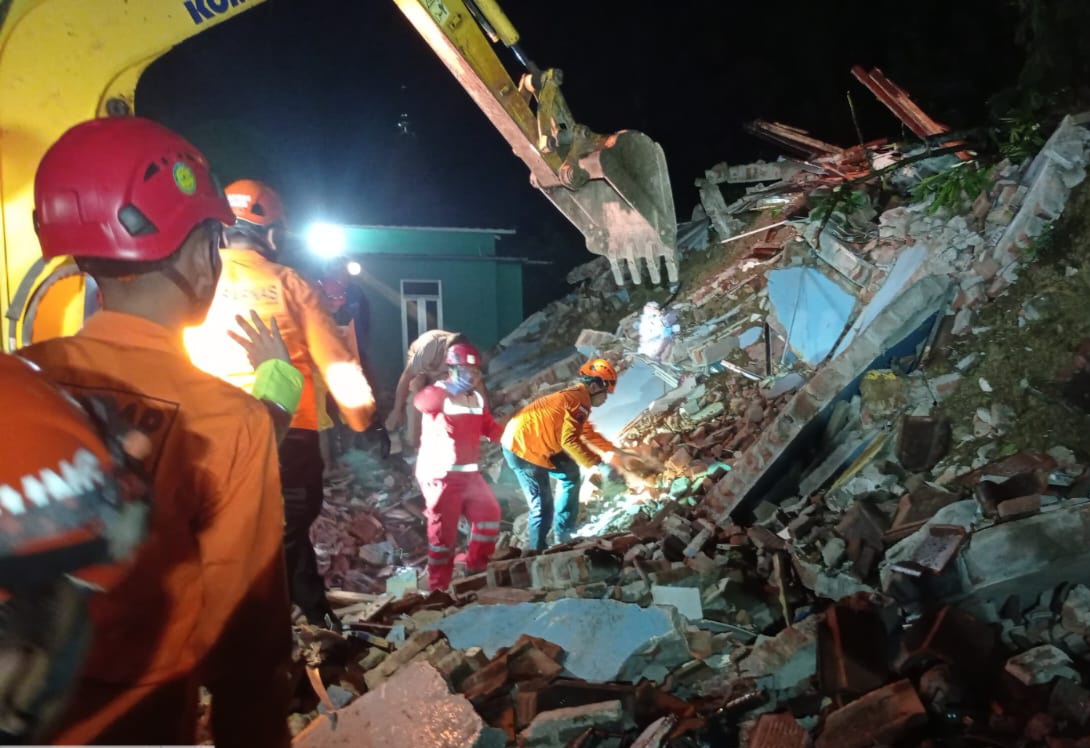 Tanah longsor tersebut terjadi setelah adanya hujan lebat yang berlangsung sejak sore. Akibatnya material tanah menimbul sebuah rumah warga.